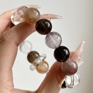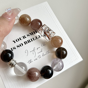 Qiaoen 天然赤銅ヘアシトリンスーパーセブンホワイトクリスタルブレスレット女の子のための大きな粒子パーソナライズされたニッチクリスタルビーズバッチ
