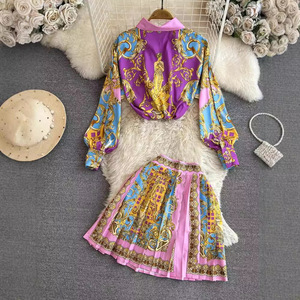 ファッションスーツの女性韓国版名媛レトロなプリント長袖シャツ