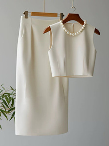 先行販売初秋の新しい気質デザインの見栄えの良い小さな香りの白いベストドレススーツ女性用