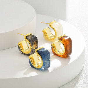 レトロ気質美ラードカレーイヤリング琥珀樹脂個性C形ピアスファッション軽贅沢高級感ピアス