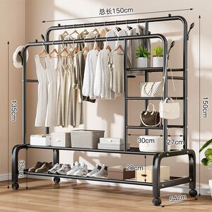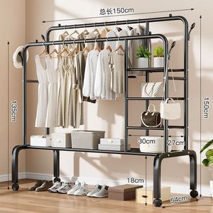 ハンガー床置きベランダ家庭用物干しラックリムーバブル寝室多層コートラック室内簡易物干しバー