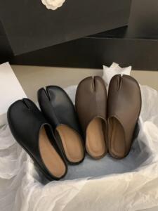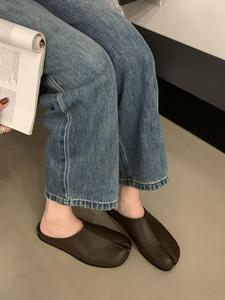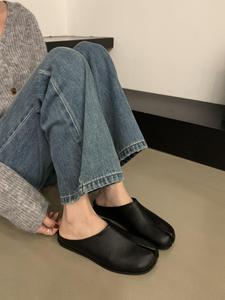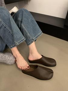 韓国の小さい靴の女性の2024夏のフランスの気質は指の豚の足の靴の平の包みの半分のミュラーの靴を分けます。