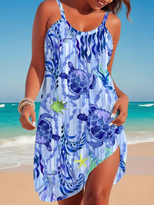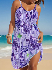 2025クロスボーダー欧米風女装セクシーワンピース外国貿易新型ウミガメ海洋風プリントストラップワンピース