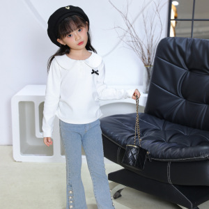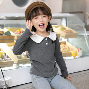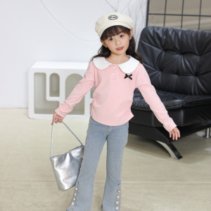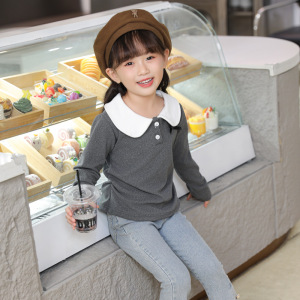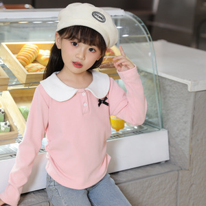 儿童秋冬娃娃领打底衫女童时髦百搭长袖T恤宝宝甜美上衣0194A051
