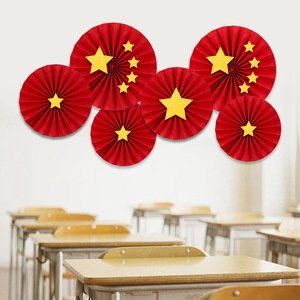 建国記念日クリエイティブ五つ星赤色紙扇装飾用品セット教室黒板新聞店舗背景雰囲気装飾