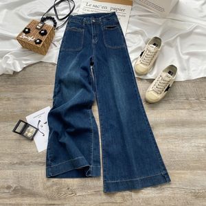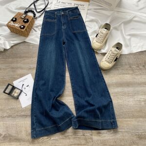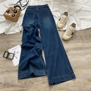 レトロな青い足のジーパンの女性の春と秋の韓国版の高い腰はゆったりしていて痩せています。