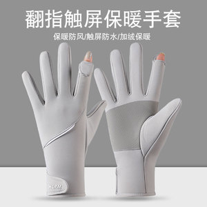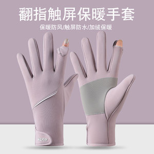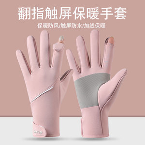 暖かい手袋、女性用自転車冬用アウトドアスポーツ、ベルベット、滑り止め、撥水、タッチスクリーン、指なしサイクリンググローブ
