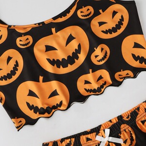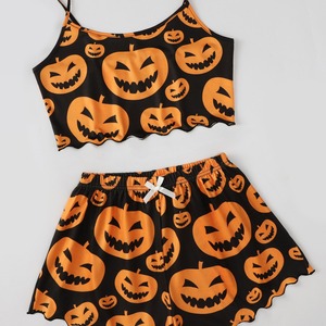 万人のクリスマスはカボチャの頭のプリントのストラップの上着の袖なしの家庭服の純粋な牛乳のシルクのパジャマの女性のスーツをいじります。