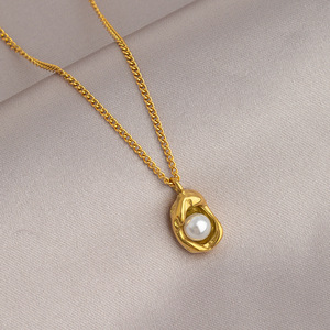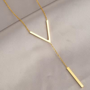 女性用ゴールデンチタン鋼ネックレス、色あせしない、軽い高級ニッチ鎖骨チェーンジュエリー、ハイエンド、多用途、ファッショナブルなネックレス