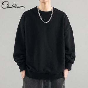 ブラック ラウンドネック スウェットシャツ レギュラースタイル - 無地 [GL]