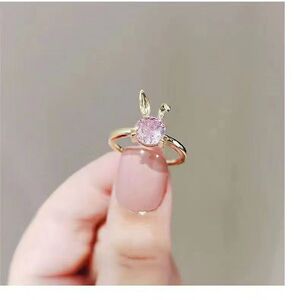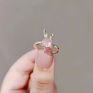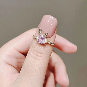 明傑のかわいいウサギの粉晶のジルコンの指輪の女性の軽い豪華な小さい大衆の設計感の少女は口の指のリングを調節します。