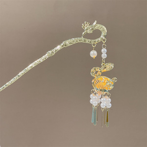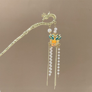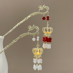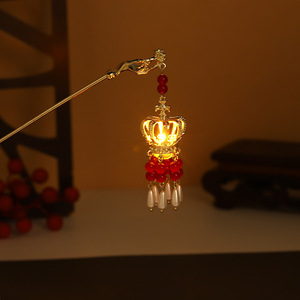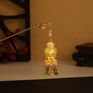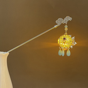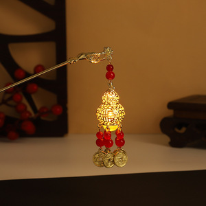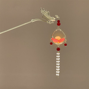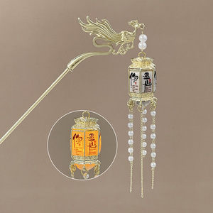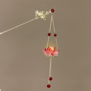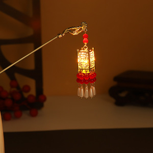 古風ヘアピン流蘇発光提灯ヘアピン挽髪宮廷仙気頭飾り日常気質百合ヘアアクセサリー女