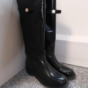 羊皮版~小金扣真皮厚底骑士靴粗跟长靴女秋韩系宽筒高筒靴长筒靴