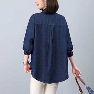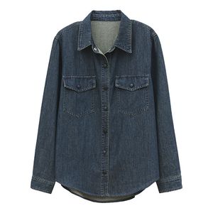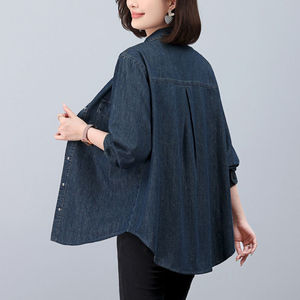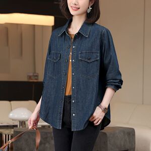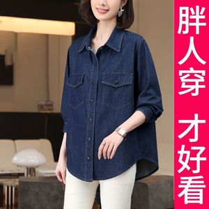 100kg 高級大きいサイズデニムシャツジャケット女性用春秋2025新作小柄な方向け長袖ミドル丈トップス