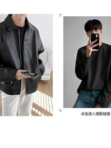 革の服のコートの男性の高級感の秋冬のタイプの街頭の復古のジャケットのファッションブランドの韓国版のごろつきの帥は襟のゆったりしている機関車の服をめくります。