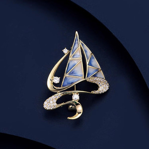 順風満帆ブローチ、高級レディース絶妙エナメルセーリングブートニエール、ニッチデザインブローチ、スーツアクセサリー