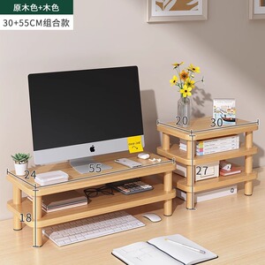 ウッドカラーの二層高架棚、4層デスクトップ収納ラック