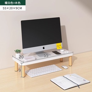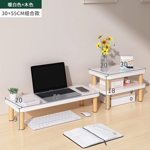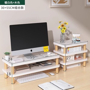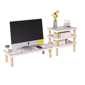 ウォームホワイトの二層高架棚、三層デスクトップ収納ラック