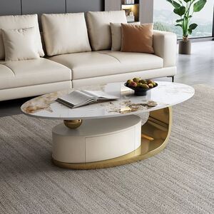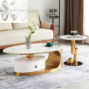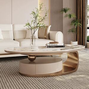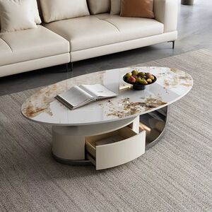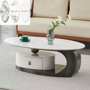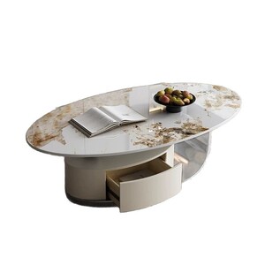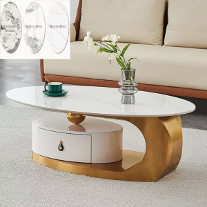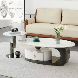 イタリア式の岩板のお茶のいくつかのステンレスの軽い豪華な現代のきわめて簡単な楕円形の貯蔵物は引き出しの客間の家庭の新型を持ちます。