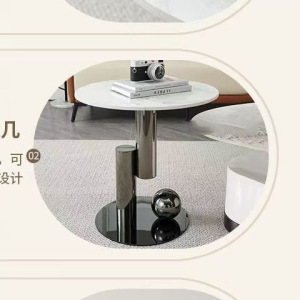 (ステンレスチタンベース)_モデル(140*80コーヒーテーブル+50ラウンドエッジテーブルセット【カラー備考】