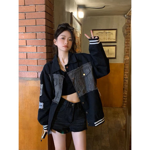 アメリカのファッションブランドのゆるいジャケットの上着の女性は秋冬にカウボーイの街頭のカップルのコートの工装の野球の服の女性をつなぎ合わせます。