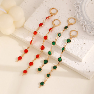 欧米の国境を越えたアクセサリーファッション感カラーガラス銅チェーンのイヤリング