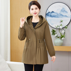 お母さんの秋の服は帽子の長袖の風衣と一緒に腰を収めてやせている雰囲気が現れます。