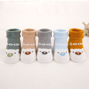 冬の新型赤ちゃんの赤ちゃんの靴下の漫画の新生児の綿の靴下は厚くて、口の子供の毛の靴下の0-1-3歳を緩めます。
