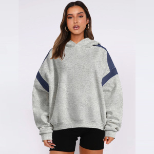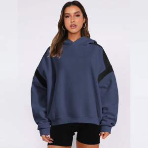 欧美跨境女装爆款慵懒感宽松撞色螺纹潮流卫衣时尚街头运动风上衣