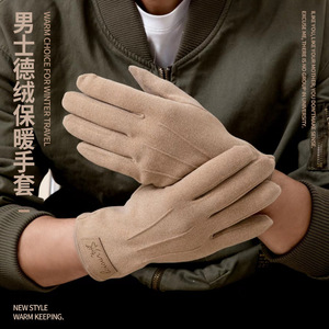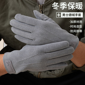 メンズドイツベルベット手袋、防風性と暖かいタッチスクリーン手袋、運転とサイクリング用、冬用の暖かく厚みのあるベルベット手袋