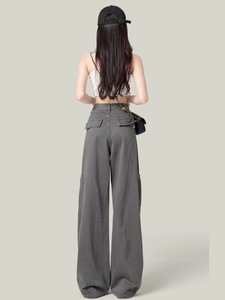 セメントグレーアメリカンワイドレッグオーバーオール女性用2025新しい小さなストレートジーンズスリムカジュアルストレート