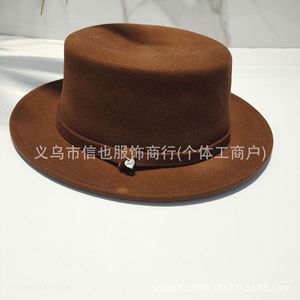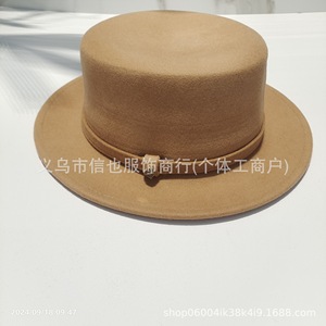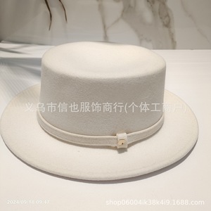 2025秋冬天英伦欧美风爱心装饰平顶礼帽宽檐遮阳复古毛呢爵士帽
