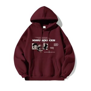美式高街连帽卫衣男春秋季新款ins设计感小众潮牌酒红色上衣外套
