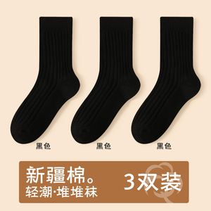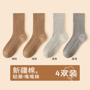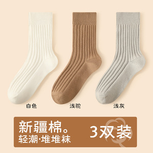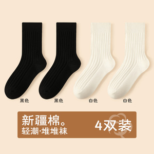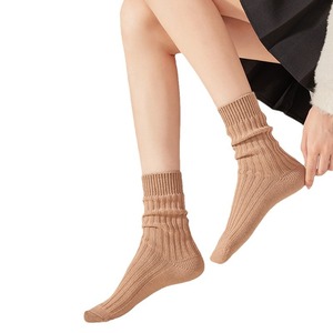 女性用ソックス 春秋用ミドル丈ソックス 黒白綿糸 秋冬用厚手綿ソックス シームレスロングソックス