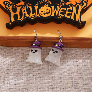 ハロウィンの趣味の漫画のカボチャの幽霊の樹脂のイヤリングは個性の大きい目の奇妙な巫女の帽子の死神の耳のフックを作ります。