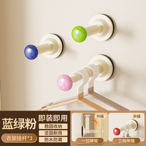 3 [ブルー+グリーン+ピンク] 吸盤伸縮式衣類ハンガー収納ラック