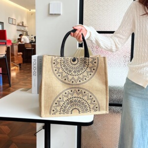 新商品の綿麻のハンドバッグのプリントのお弁当の手提げ袋の大容量の手提げ袋はアルファベットのプリントの女性のカバンを包んで卸売りします。