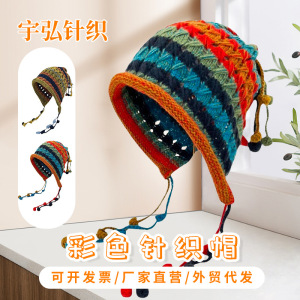 韓国の手作りのかぎ針のカラーボールのニットの毛糸の帽子の子供の秋冬のひものフリンジの頭の保温の耳の冷たい帽子