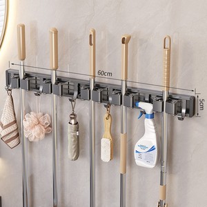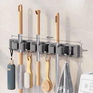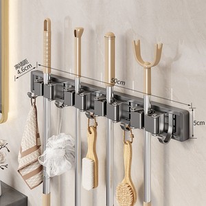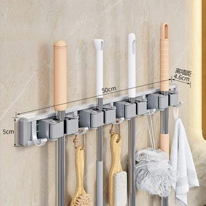 ジンペン モップ壁掛けクリップ 穴あけ不要 トイレほうき固定ラック モップラック 収納 大型フック モップ掛け
