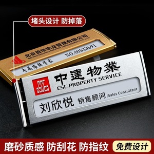 名札カスタムメイド アルミ合金製名札 カード挿入可能 交換可能 金属製従業員番号プレート 刻印入り 銀行名札製作