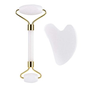 玉の美しい容器の金属の竿の白玉の双頭のローラーのハート型のスクレーパーの双押しの顔の顔の目の部のマッサージの棒