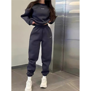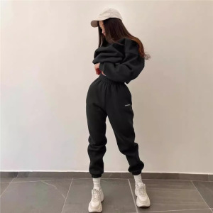 国境を越えた秋のアマゾン欧米の女装の純色のカジュアルなファッションのズボンは長袖の帽子のセーターのスーツの女性を厚くします。