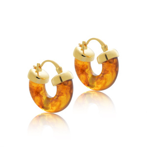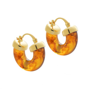 国境を越えた新型フレンチレトロ高級感琥珀カレー樹脂耳ボタン軽贅沢気質個性イヤリング耳飾り