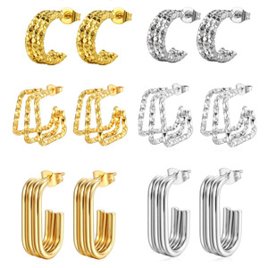 国境を越えた欧米のステンレスの幾何学の多層のピアスのC形の満天の星のイヤリングのシンプルな気質のU形の楕円のイヤリング