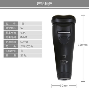 送料無料【工場ストレートヘア】Borui 156 電気シェーバー 3 ヘッド フローティング Type-C 充電式 もみあげナイフ付き