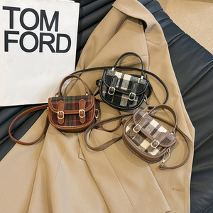 バッグの女性の秋冬の新型の毛の格子の手提げの貝殻の包みの子供の女の子の百合の小銭の口紅の斜め掛けのカバン