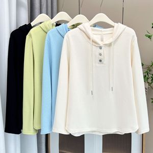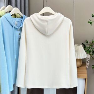 2024大サイズ女装秋シンプル純色フード付き200斤太ったMMカジュアル減齢フード上着5121