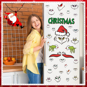 新款圣诞节墙贴格林奇冰箱贴纸pvc自粘绿毛怪节日气氛装饰袋子贴