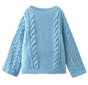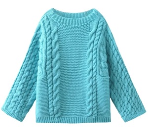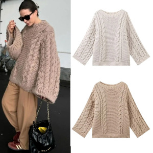 クロスボーダー欧米卸売女装速売通INS起爆丸首ラッパ袖ニットゆるい麻花ニットセーター