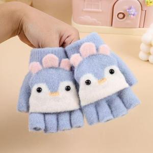 冬の子供の手袋の水晶のミンクの子供の漫画の学生の半分の指はふたをひっくり返して保温します4-10歳の子供の手袋